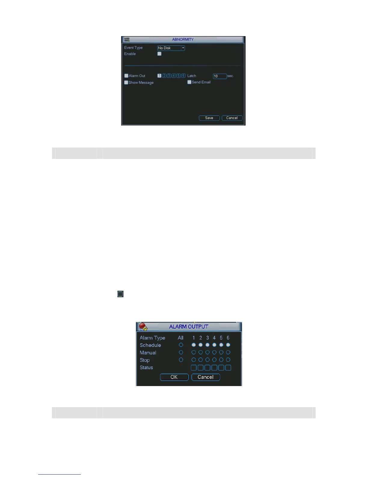 Alarm type You can set alarm mode, schedule alarm, enable or disable the alarm output