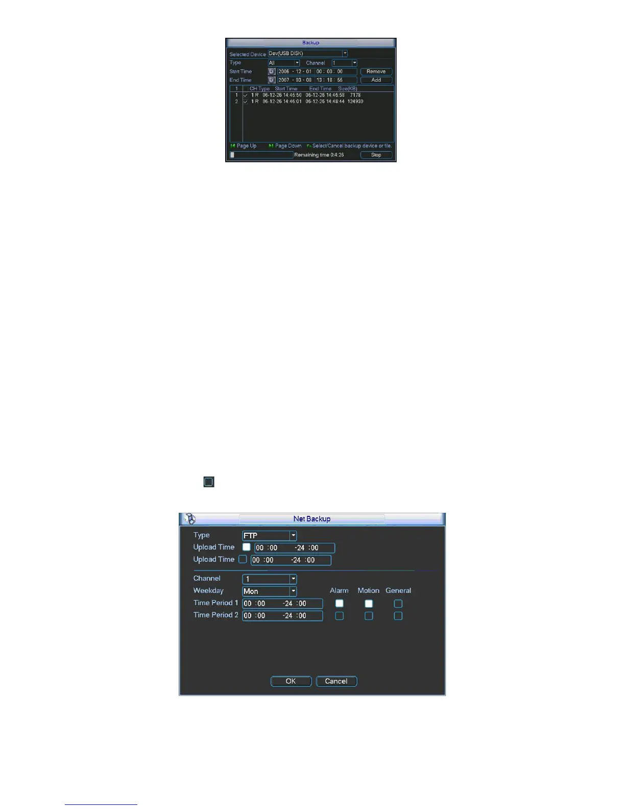 and upload time. Right now, the network backup supports FTP only. You can go to chapter
