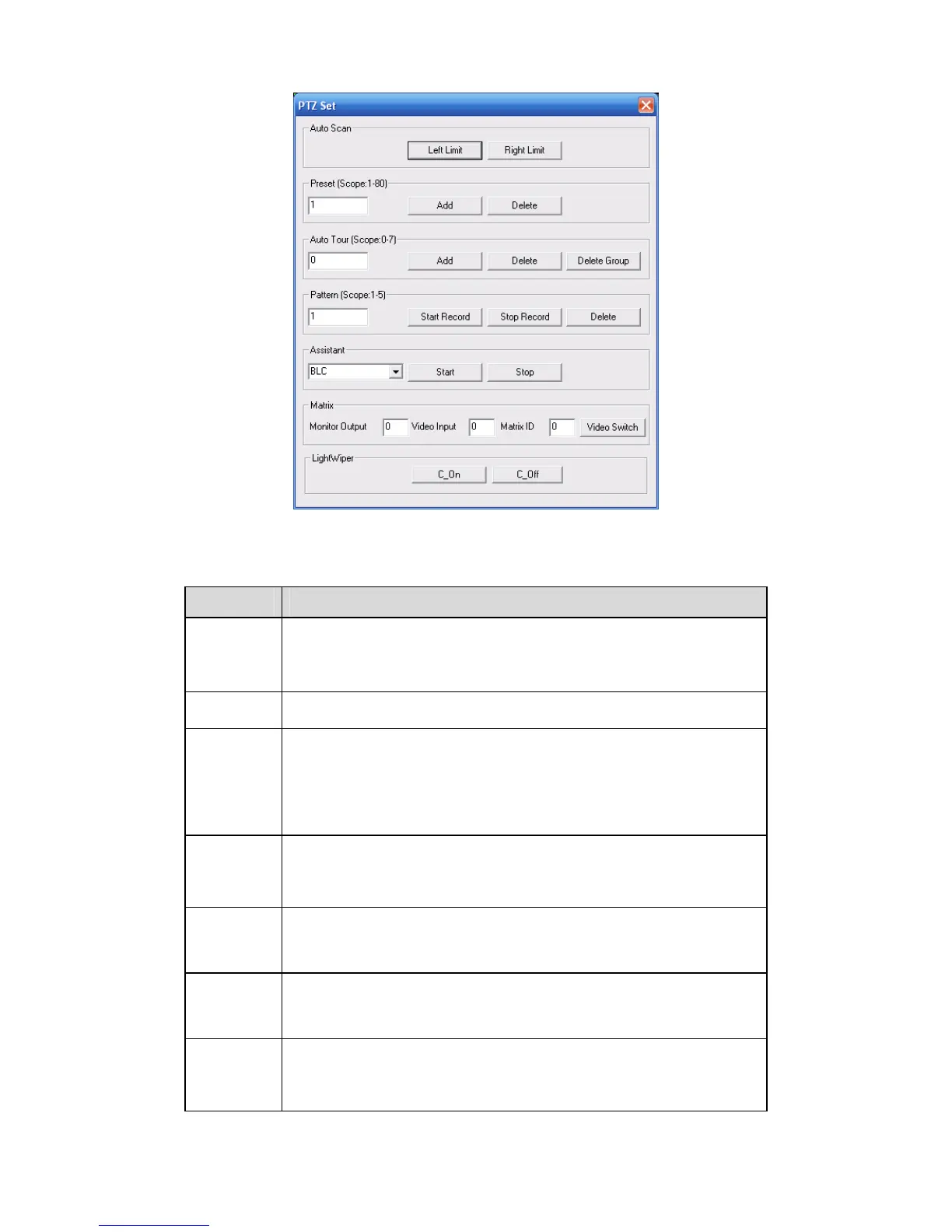 Please refer to the following sheet for PTZ setup information.