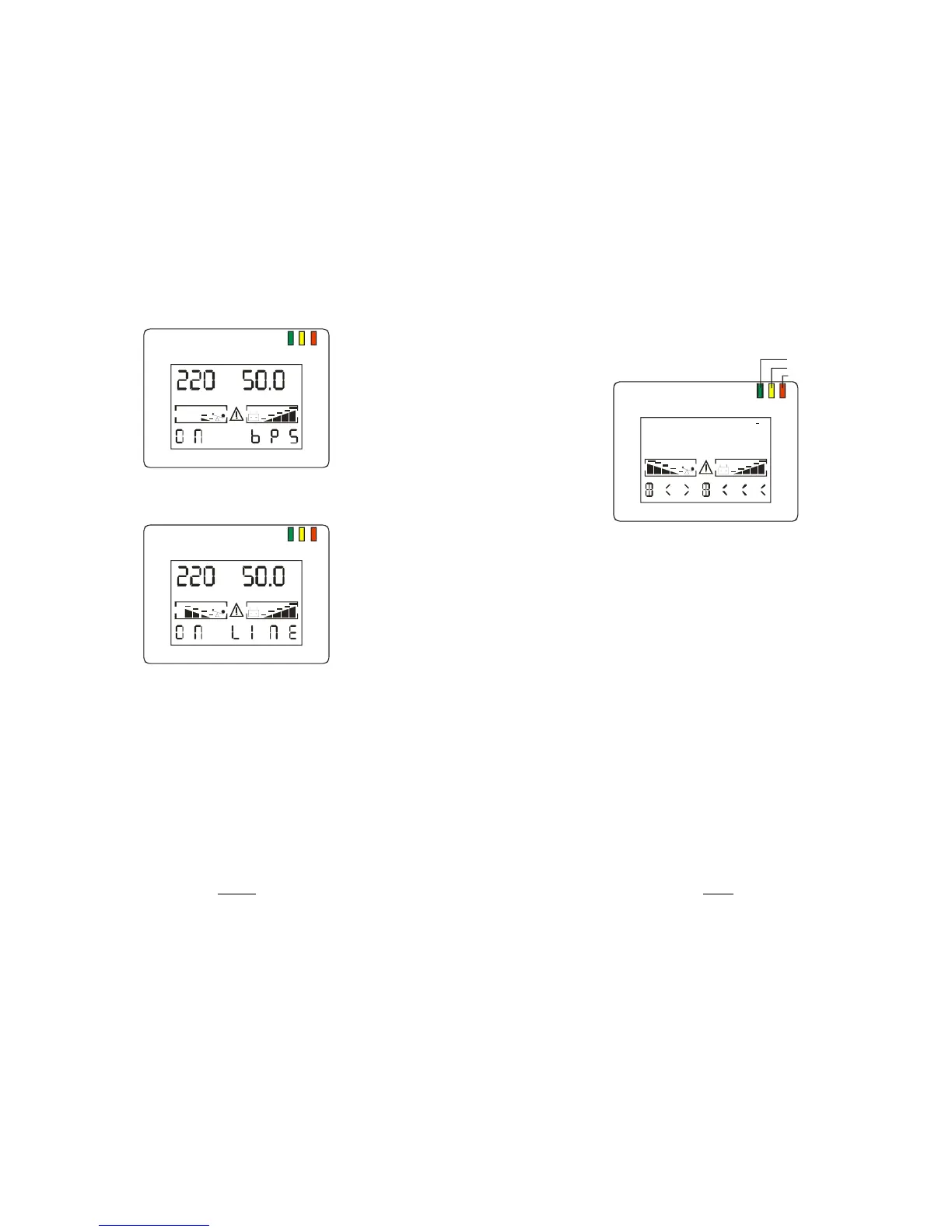 ditampilkam dengan “on batt”. Mode bypass ditampilkan dengan “on bps”.