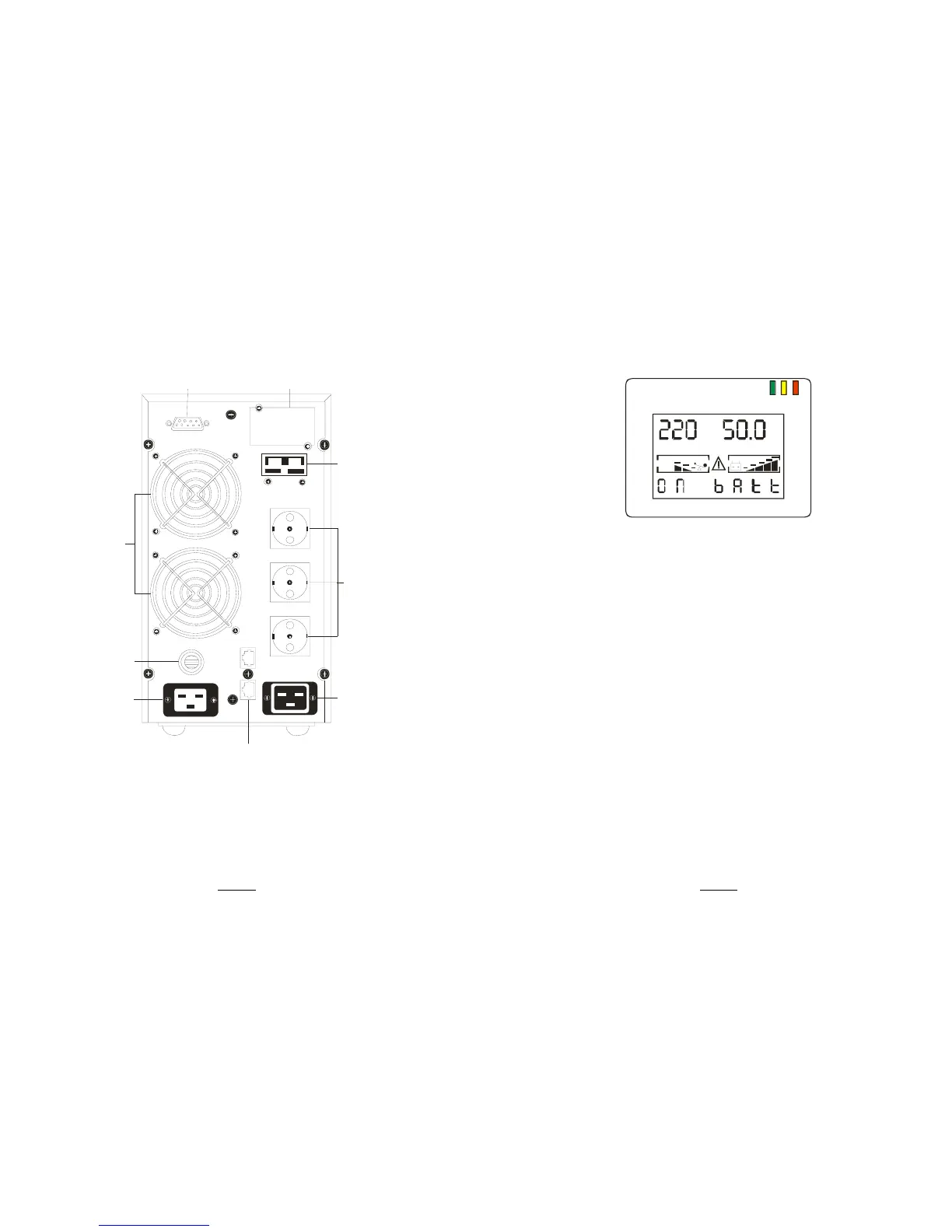 LED hijau nyala, dispay LCD: Statusnya “on batt”.