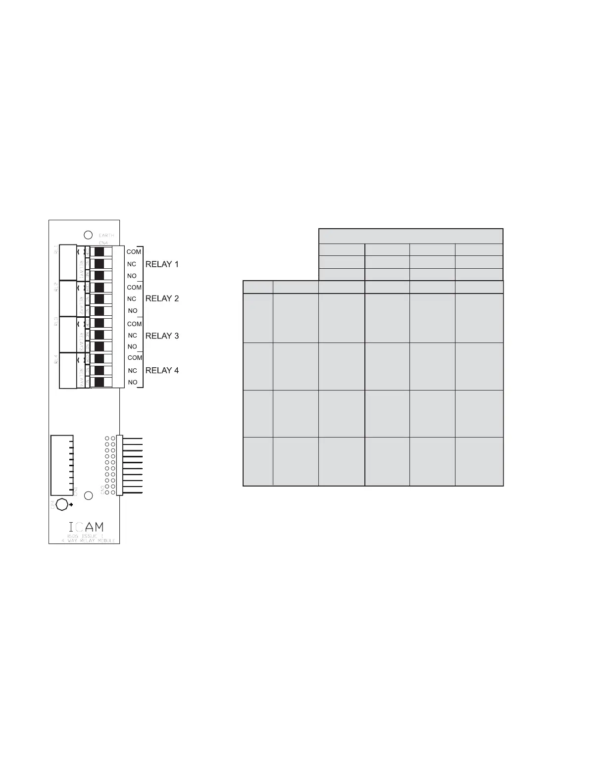 The usage of each set of four relays may be chosen from ALERT, ACTION, FIRE 1, FIRE 2 or FLOW according to the following