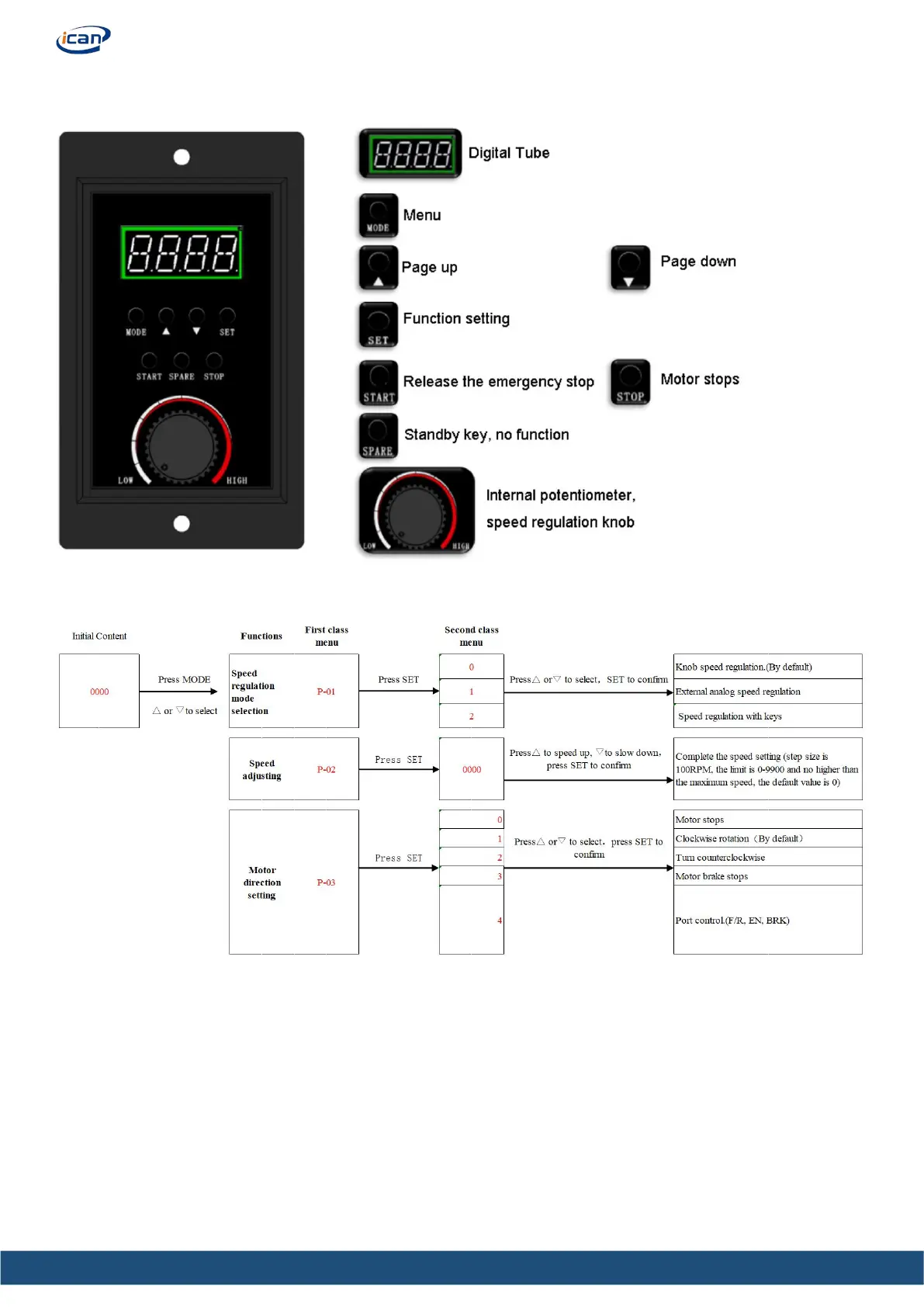 ICAN SEH400RB - Panel Layout and Operation; Drive Panel Control Settings