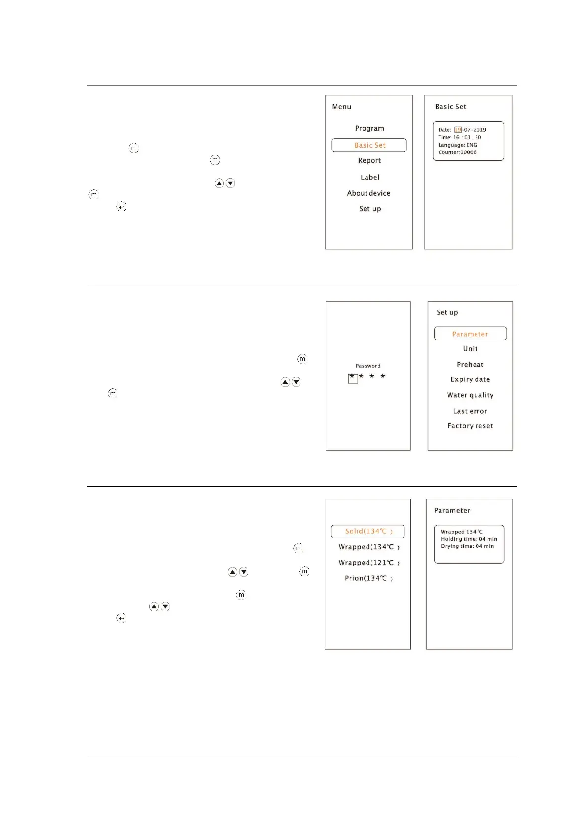 Select “Parameter” from the menu by pressing