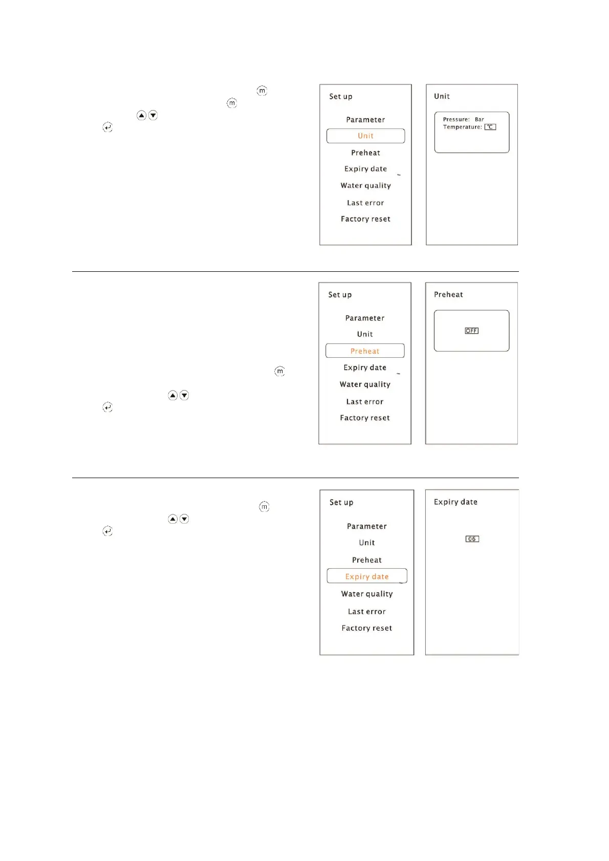 “Expire date” from the menu by pressing button.