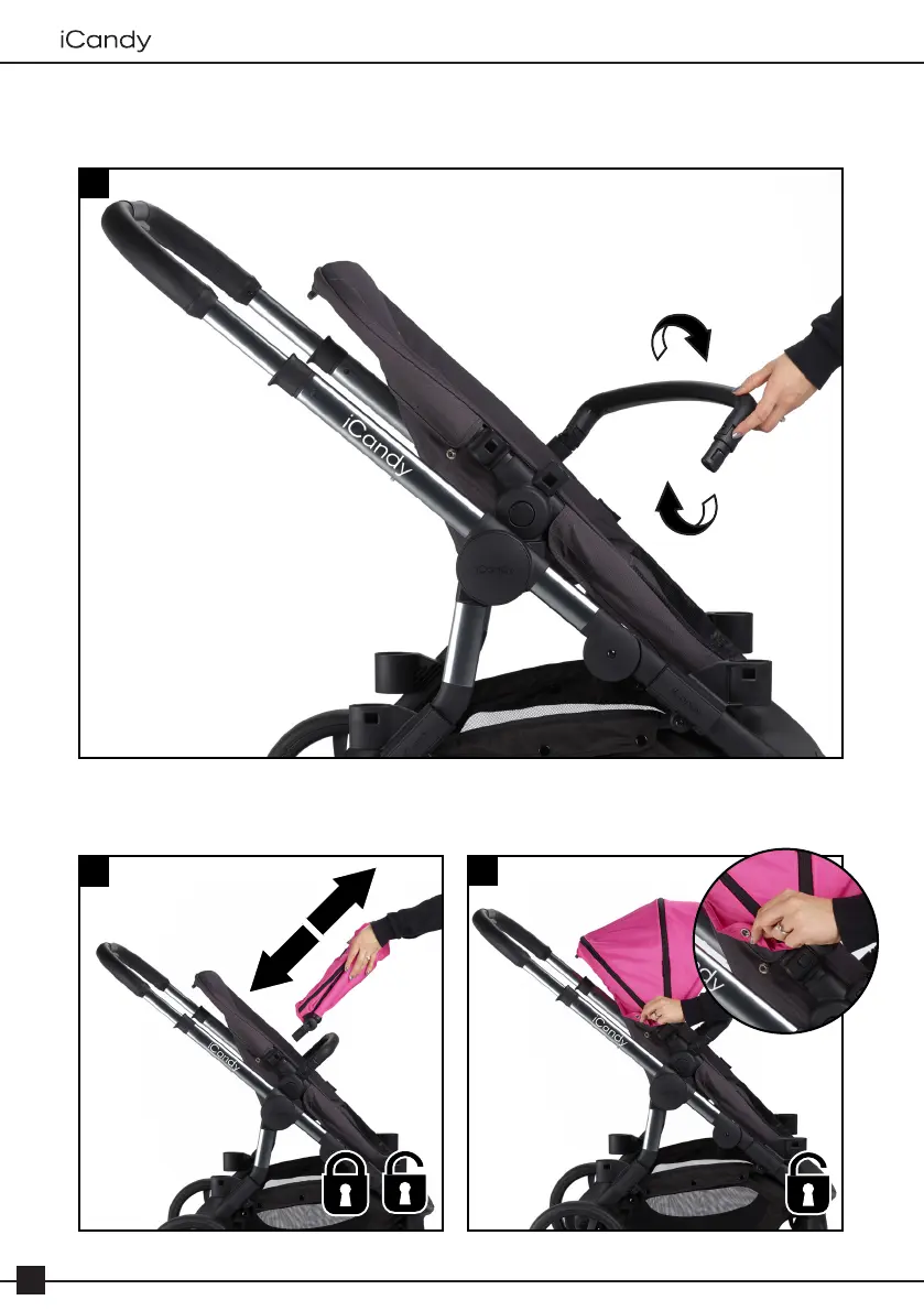 Verdeck ein / Inserire/regolare la cappa / Insertar o ajustar la capota / Kap plaatsen/aanpassen
