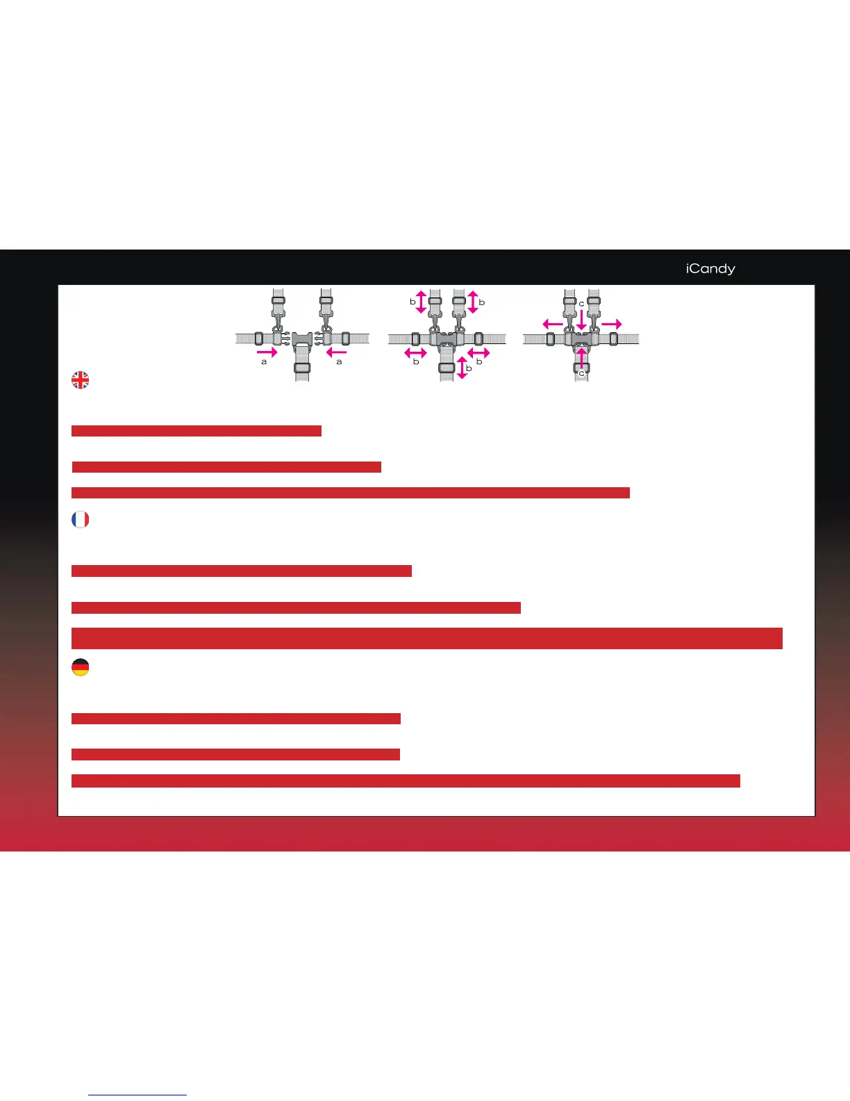 mit den Schiebeschnallen eingestellt werden (b). Öffnen des Verschlusses: Die Schnallen nach innen drücken (c) und aus dem Schnallengehäuse herausziehen. Mit den mitgelieferten Stoffschlaufen kann ein