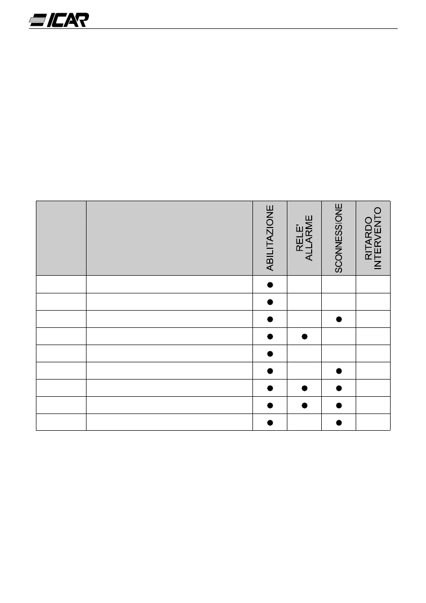 Ciascun allarme può provocare effetti diversi, come l’intervento del relè di allarme, la di-