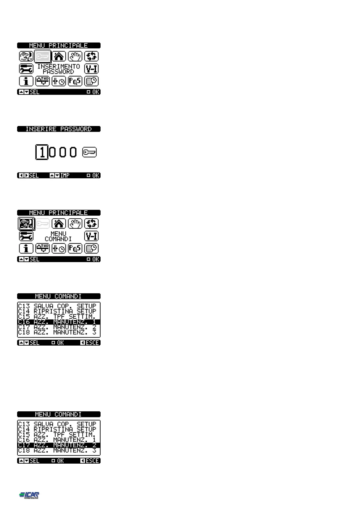 3. Inserire la password 1000 e confermare portando il cursore sulla ultima icona premendo il tasto rettangolare centrale.