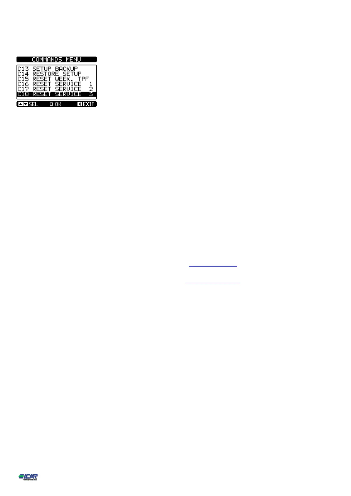 By pressing the down arrow select the command C18, press the center button and confirm.
