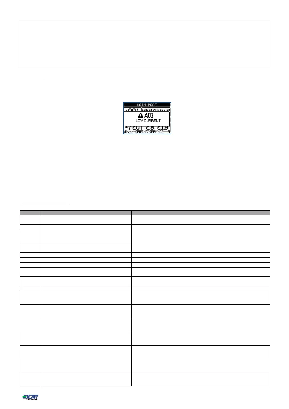 When an alarm is generated , the display will show an alarm icon, the code and the description of the