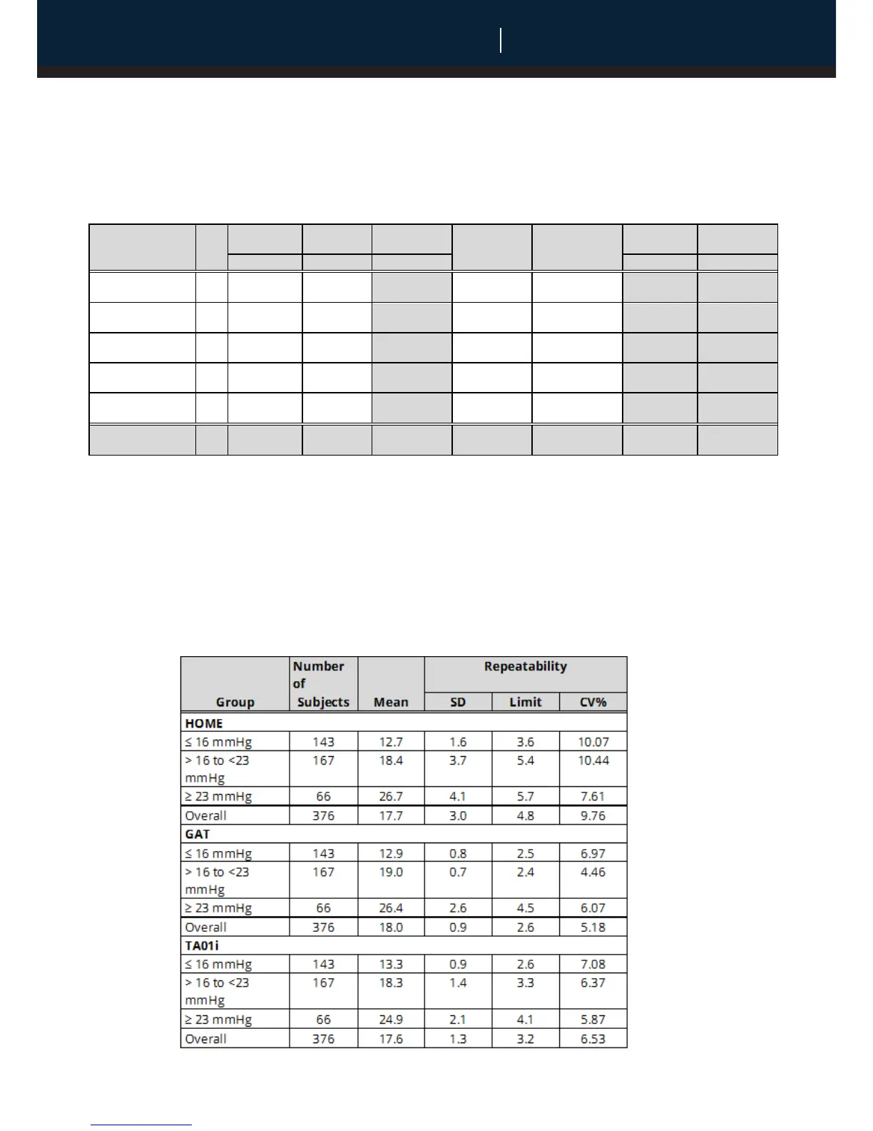Precision: Table 5 provides the repeatability analyses for all measurements in the