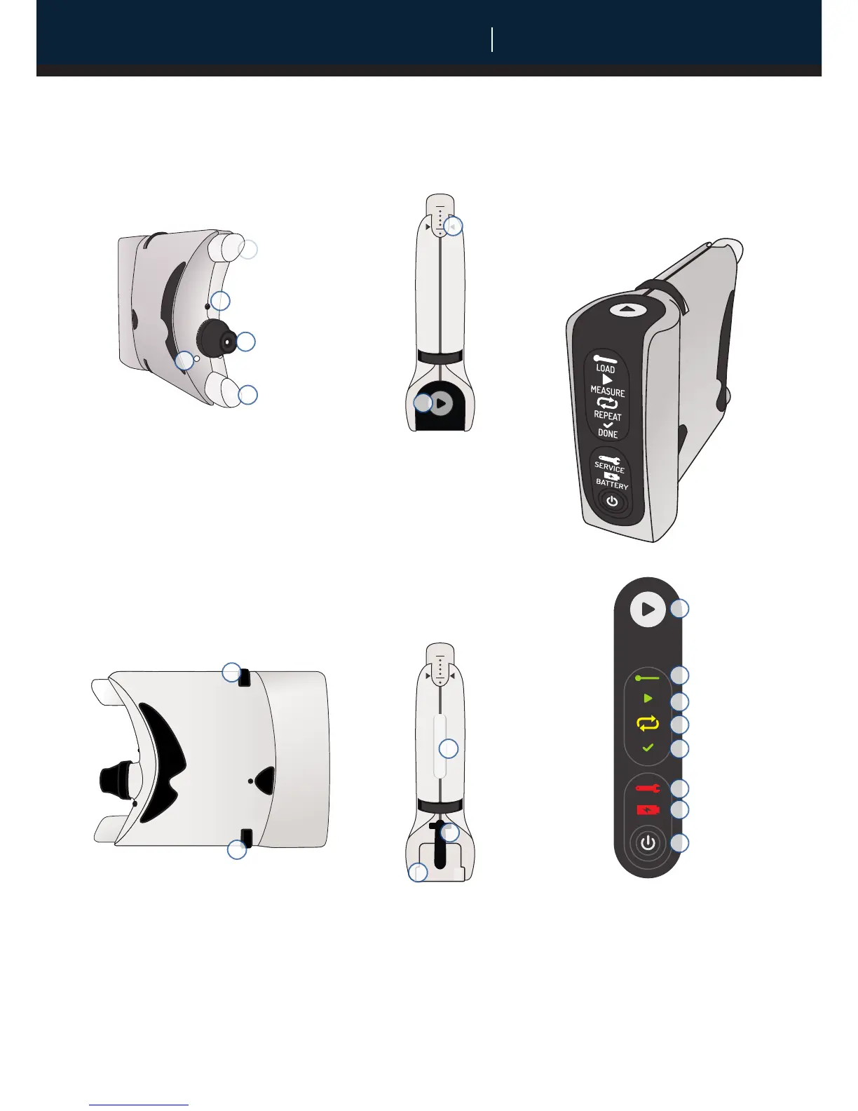 Find the main parts, buttons and indicator lights of the tonometer in the below gures.