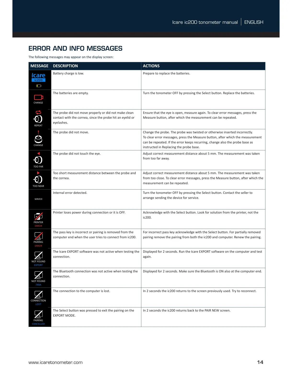 ENGLISHIcare ic200 tonometer manual