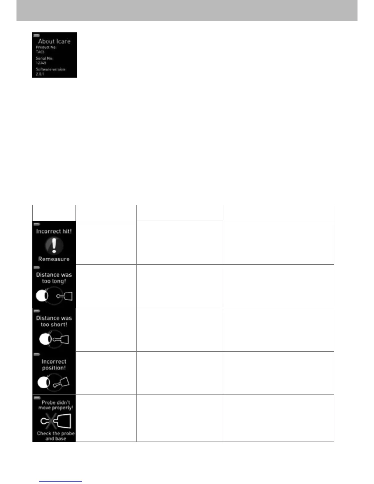 probe during measurements, and uses messages and signals to indicate errors. The following table