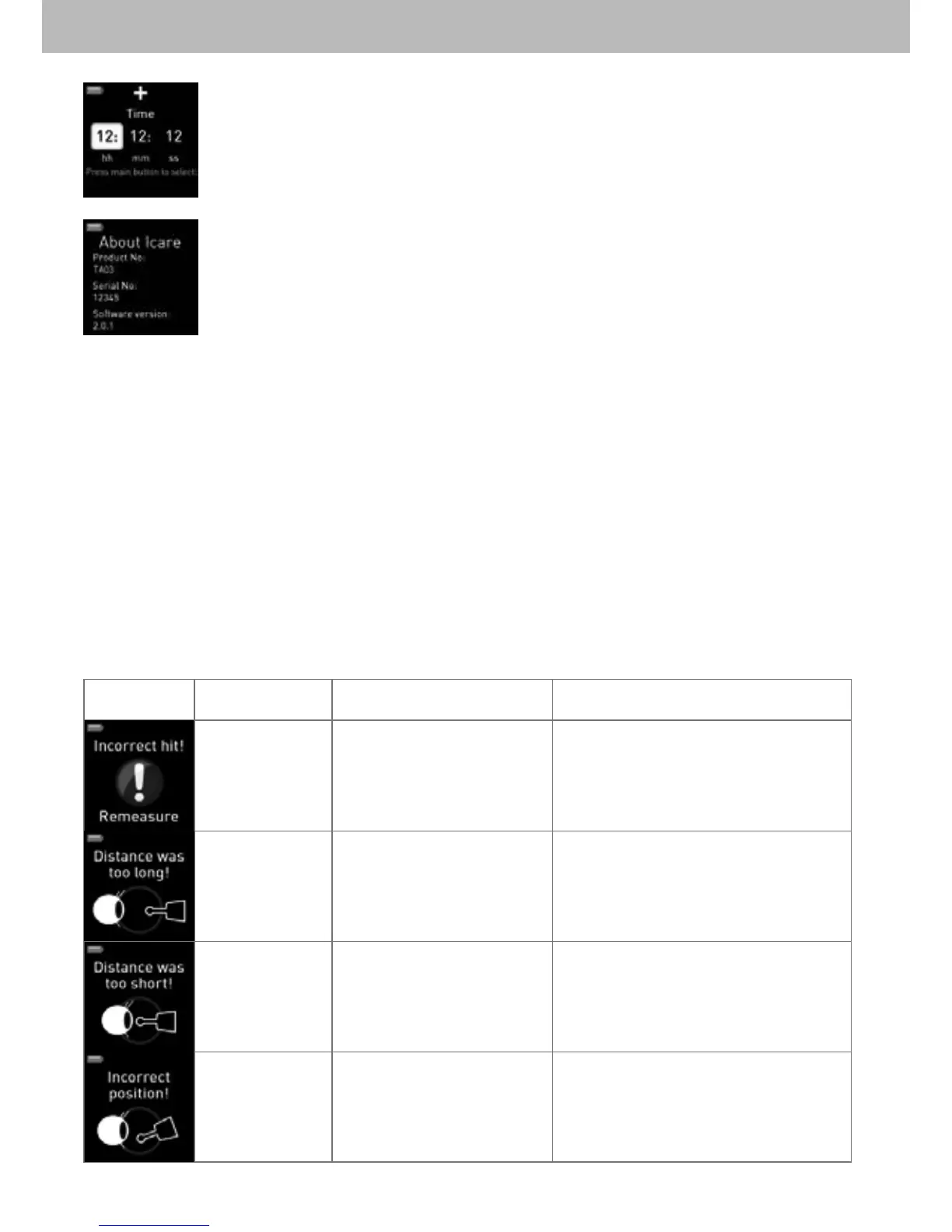 About (Sobre) - mostra o número de série e a versão de software do seu tonômetro
