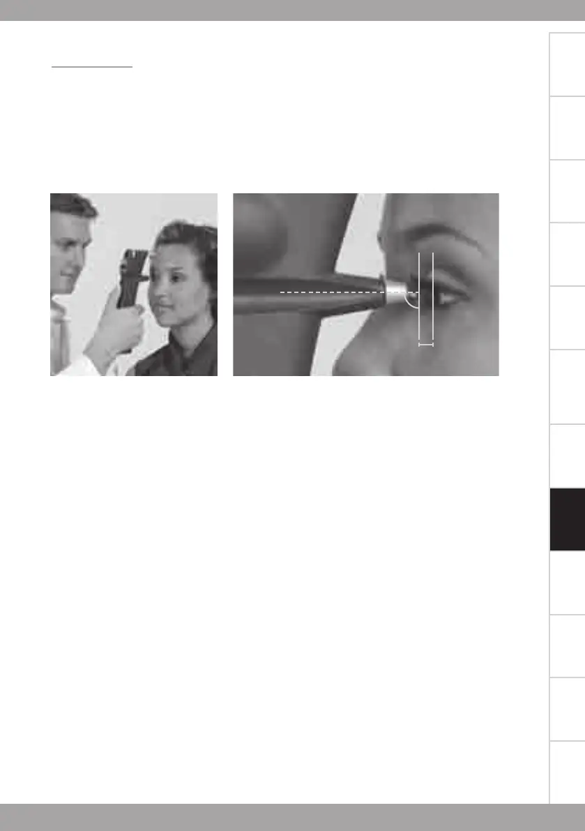 Be patienten slappna av och rikta blicken rakt fram mot en viss punkt. Håll tonometern nära patientens