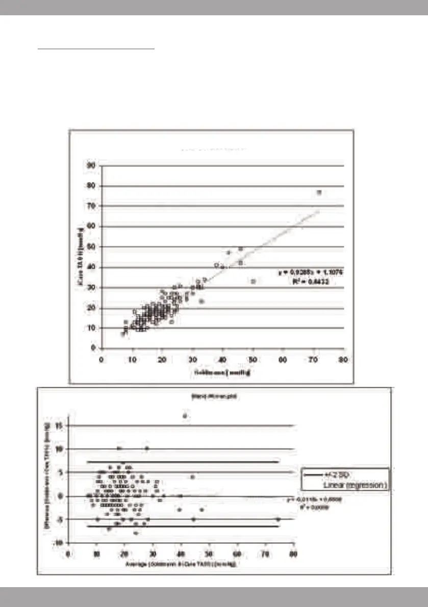 Streudiagramm und Bland-Altman-Plot des Vergleichs von