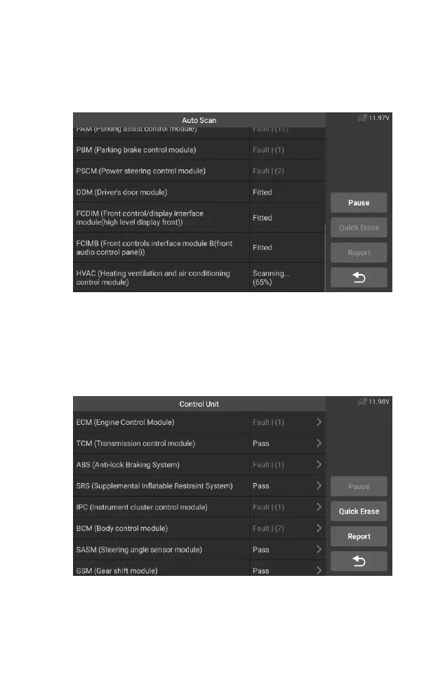 The Auto Scan function performs a comprehensive scanning of the ECUs in