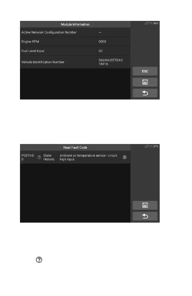 Save – tap this icon to save the information related to the fault code