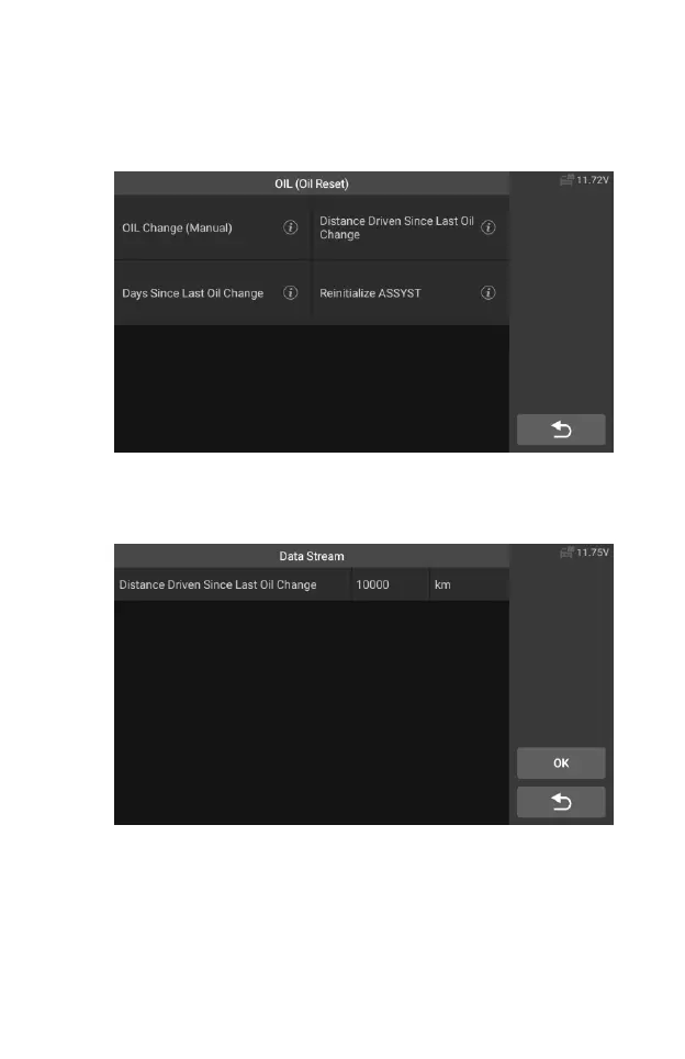 6. Enter the required mileage after oil change and tap [OK] to next step