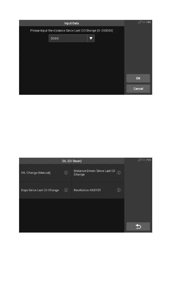 2. Tap Oil Reset button and wait for the vehicle manufacturer screen.