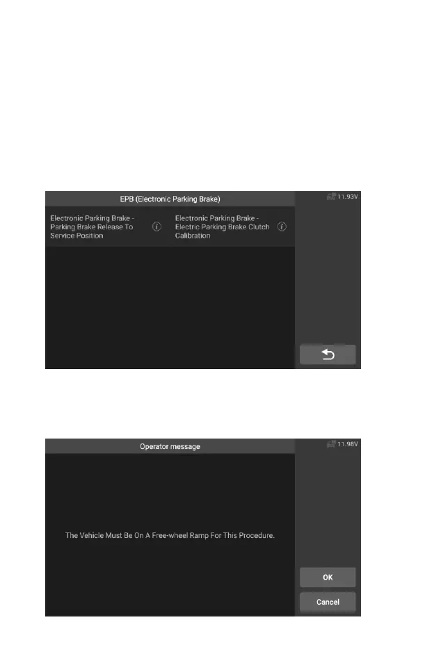 2. Tap EPB button and wait for the vehicle manufacturer screen.
