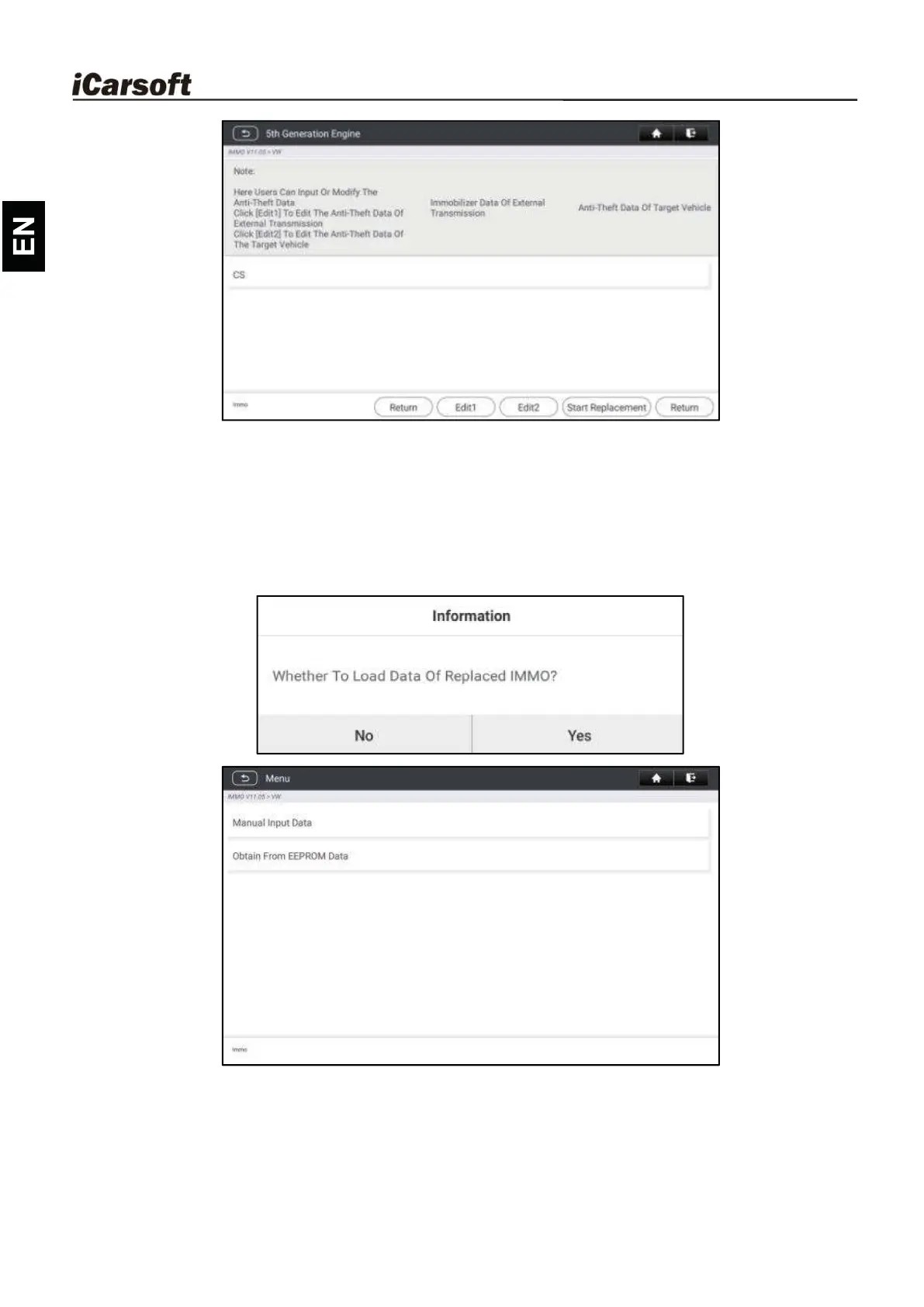 1).Select Edit1, tap NO, tap Obtain From EEPROM Data, select the new
