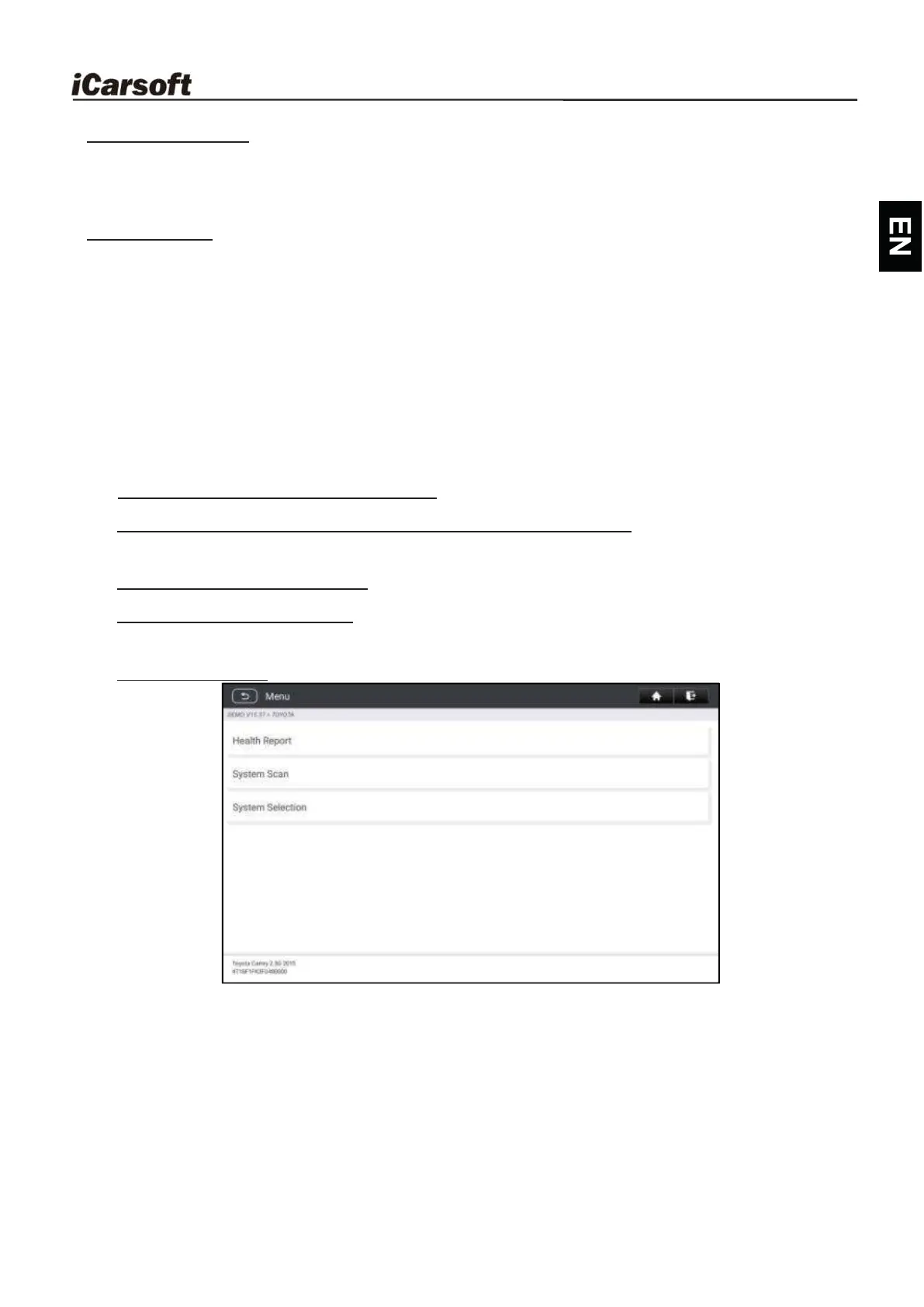 Tap Health Report on the test item selection screen to scan the vehicle control