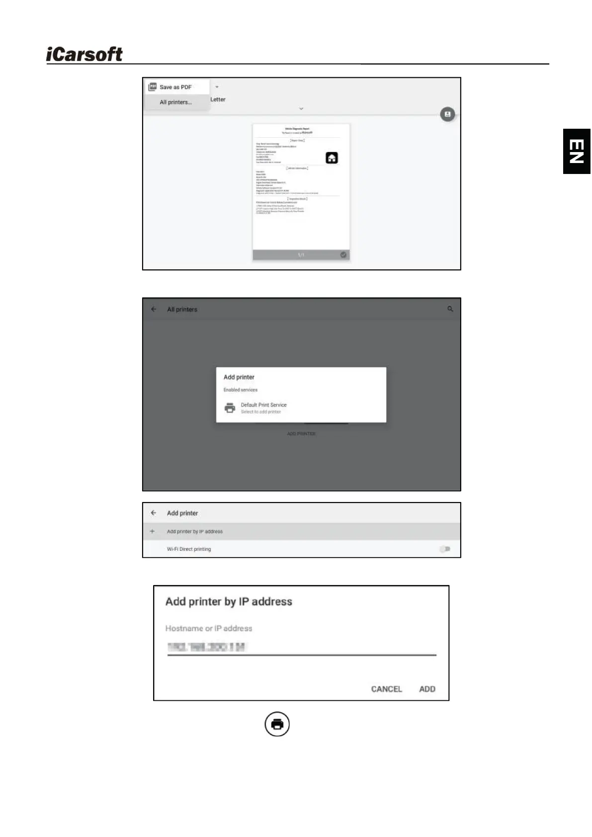 4. Tap “Default Print Service”, and choose “Add printer by IP address”.