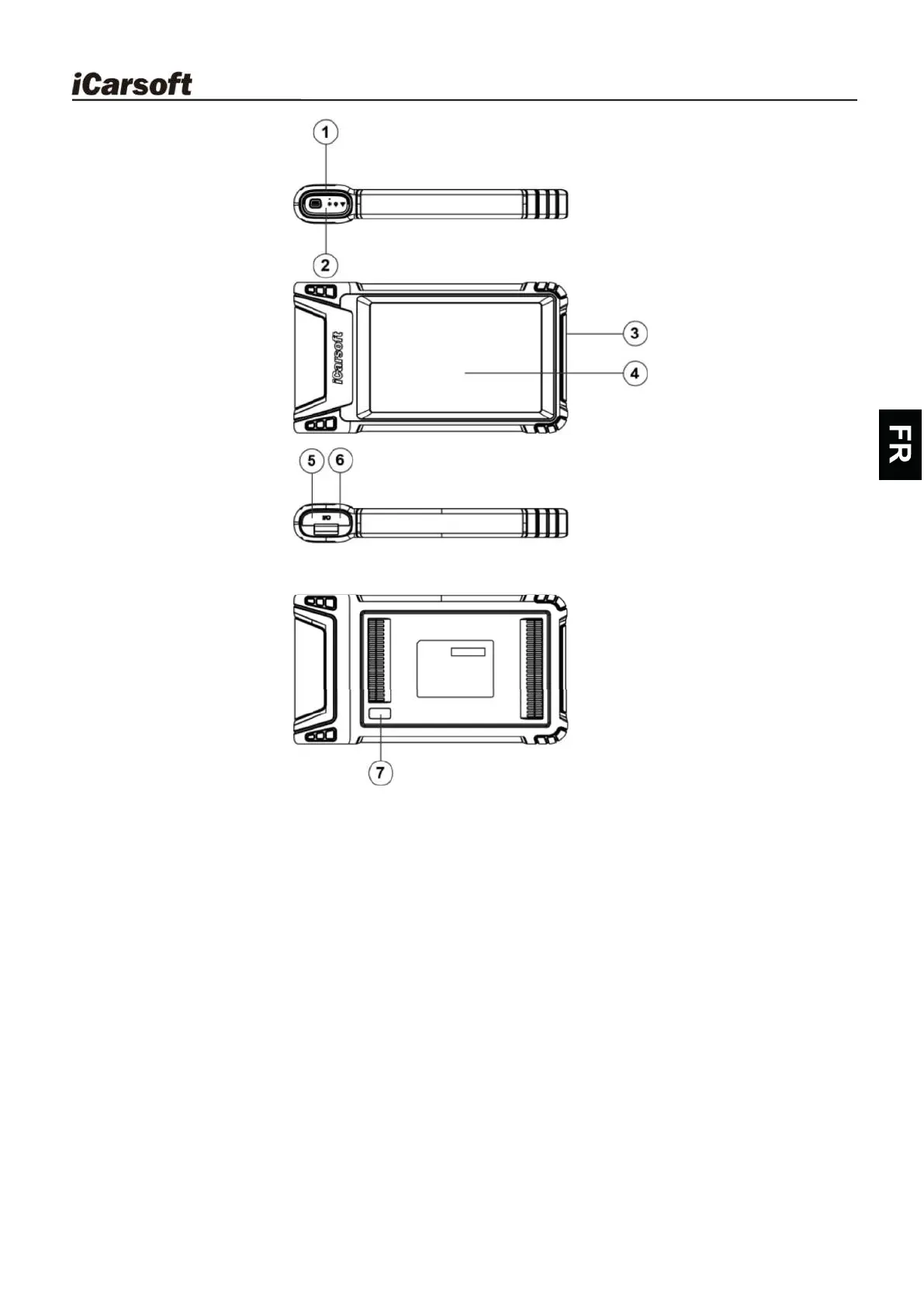 6. Port USB Type A-Connectez la tablette au dongle VCI via un câble de données.