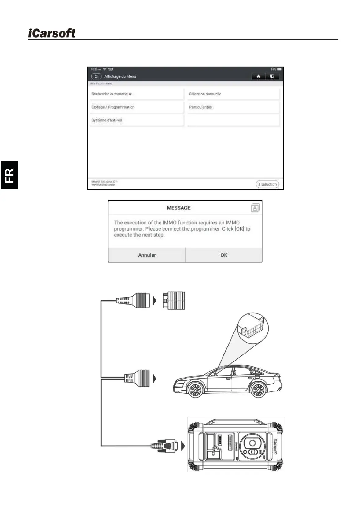 connecter le dongle VCI, le hicule et IM2000 PRO pour effectuer l'étape