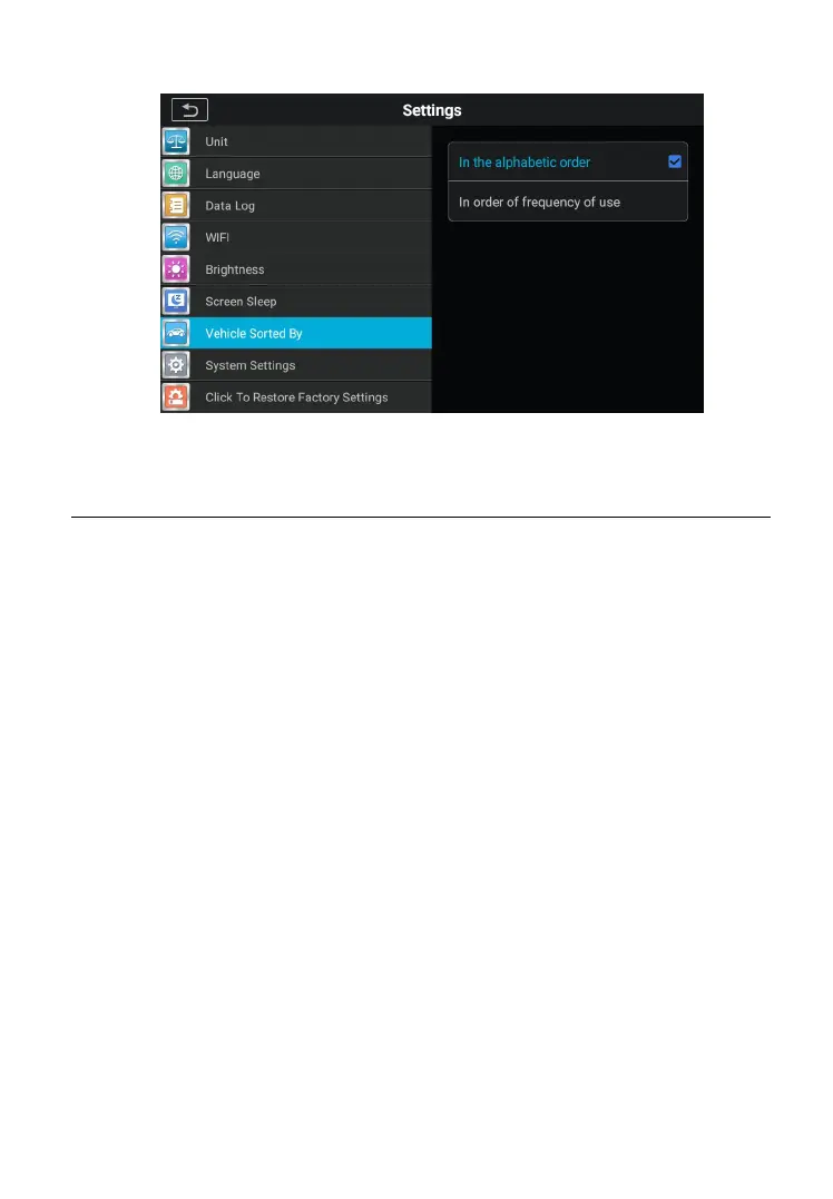 Figure 9-6 Sample Vehicle Sorted By Setting Screen