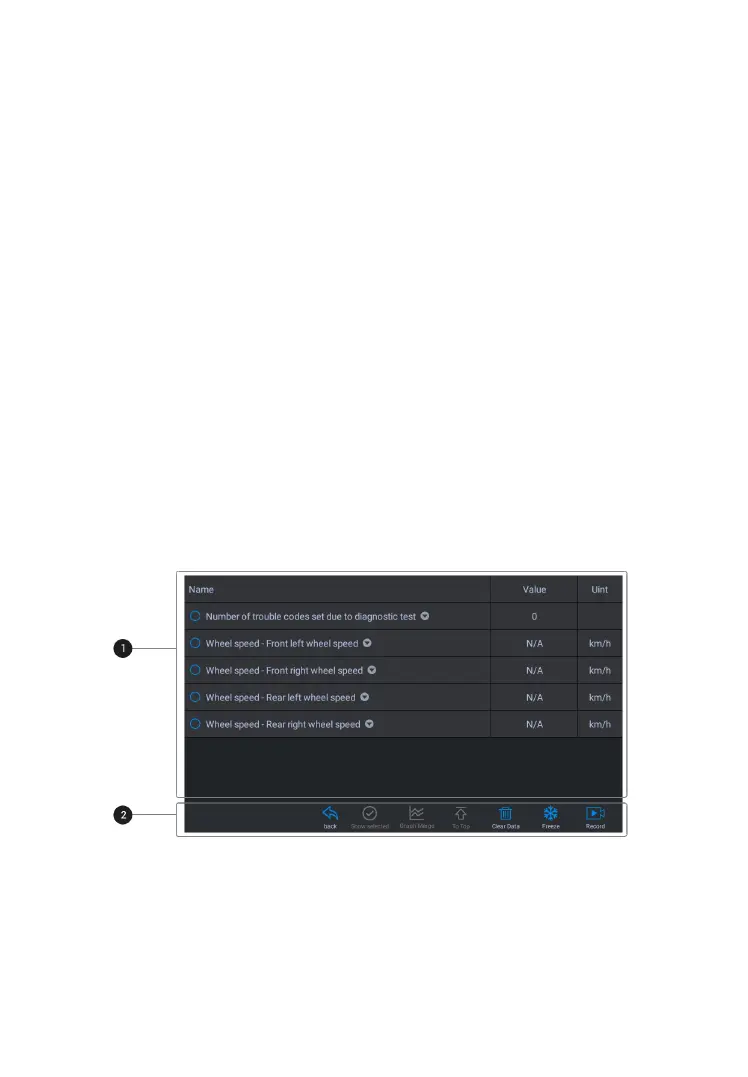 When this function is selected, the screen displays the data list for
