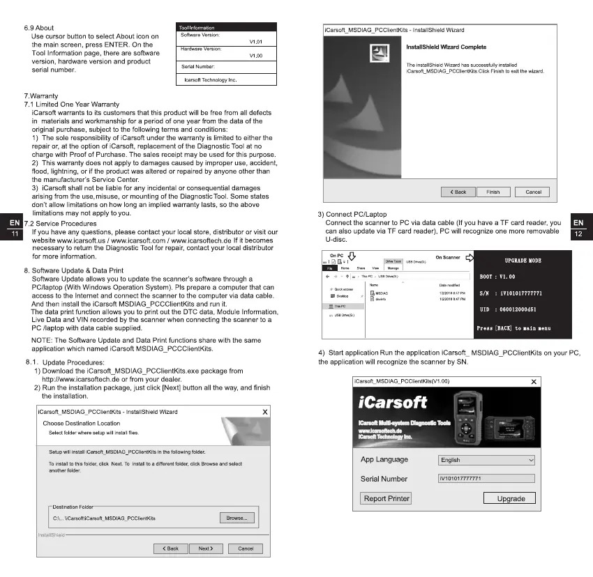 iCarsoft CR Pro V2.0 - Software Management; Software Update Procedures; Device Information and Warranty; About Device Information