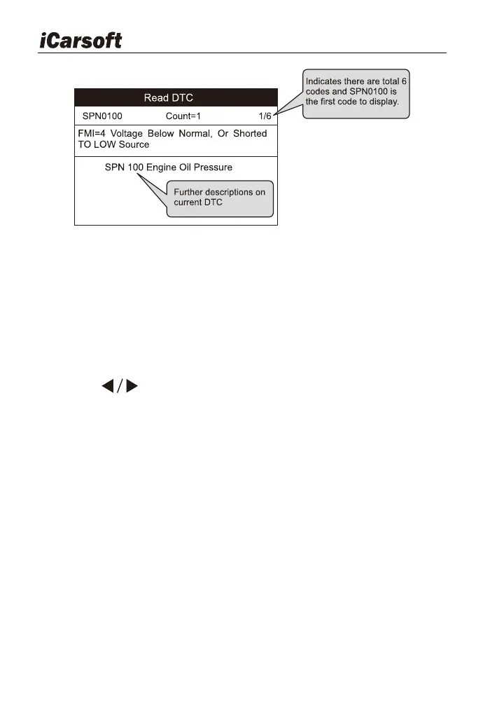 Press [ ] to view the next or previous trouble code; press [ BACK]