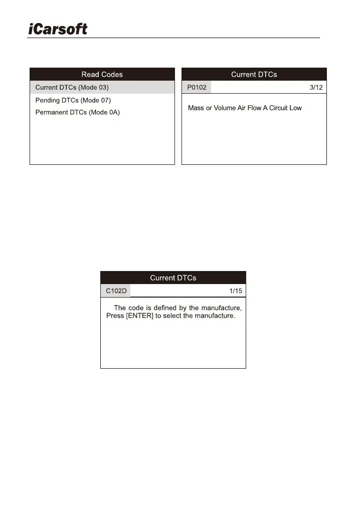 In Figure 5-10, 3/12 indicates there are total 12 codes and P0102 is the third