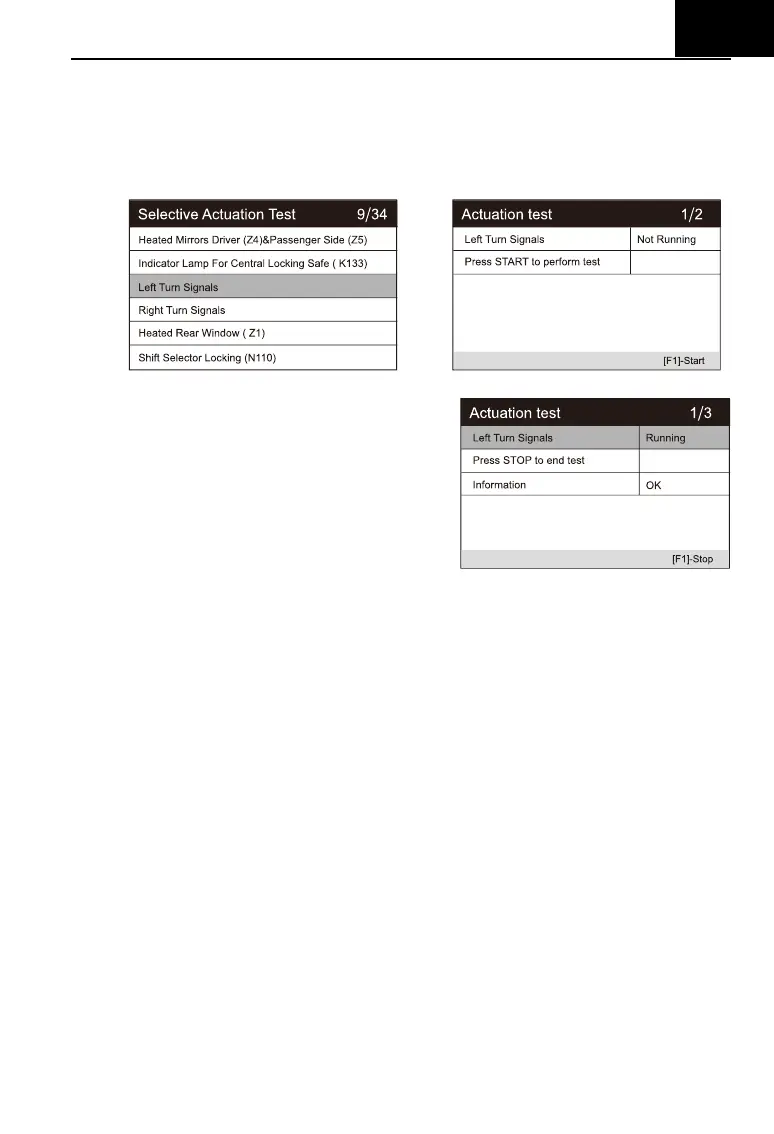 1) Enter the action test and select left turn signals.