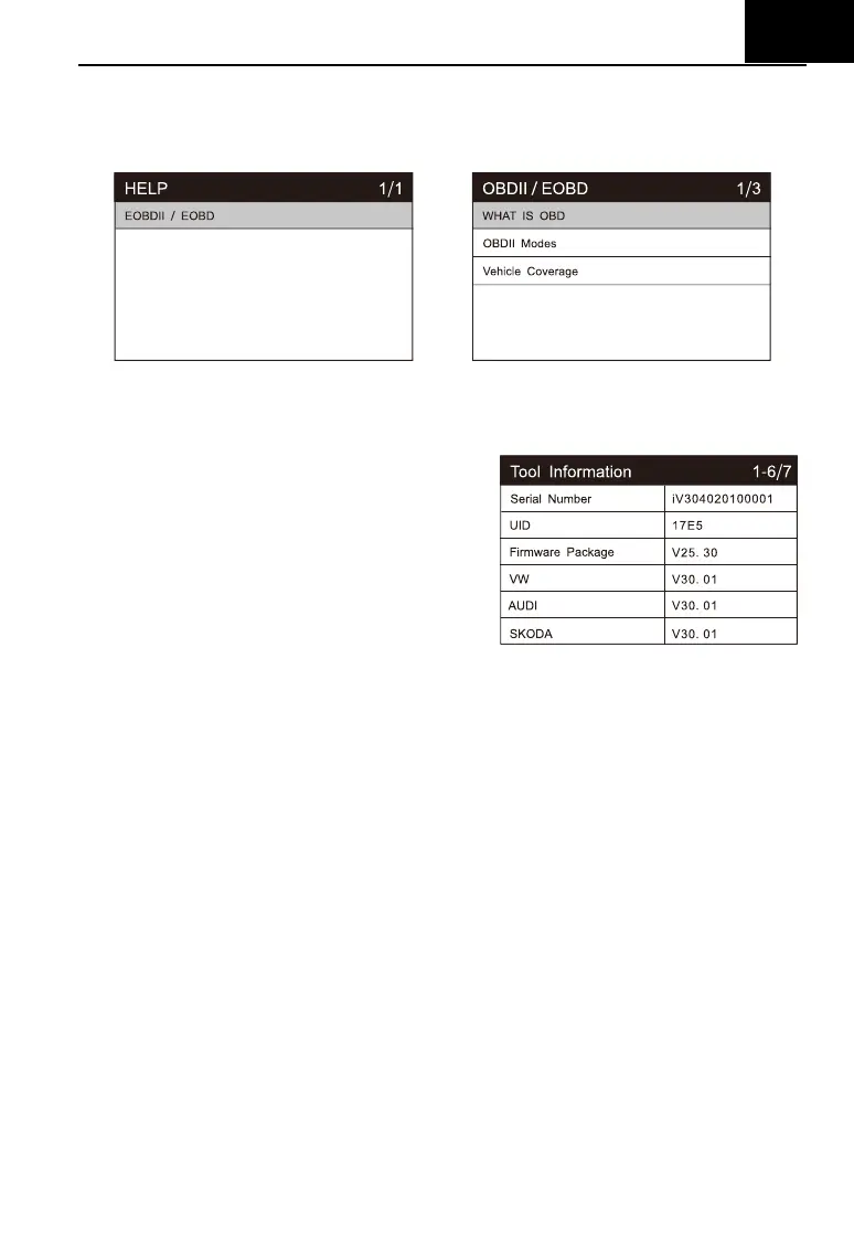 Use cursor button to select Help icon on the main screen, press ENTER.