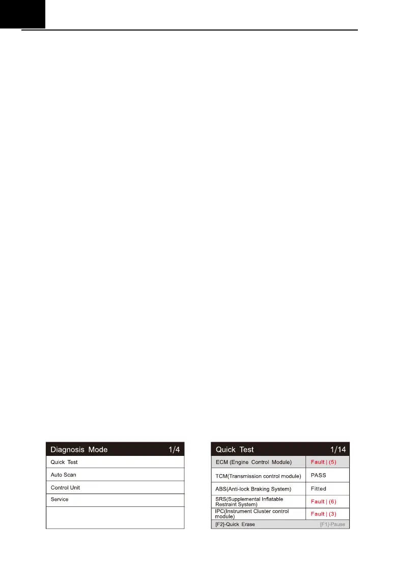 shown in the figure below: Quick Test, Auto Scan, Control Unit, Service, Quick