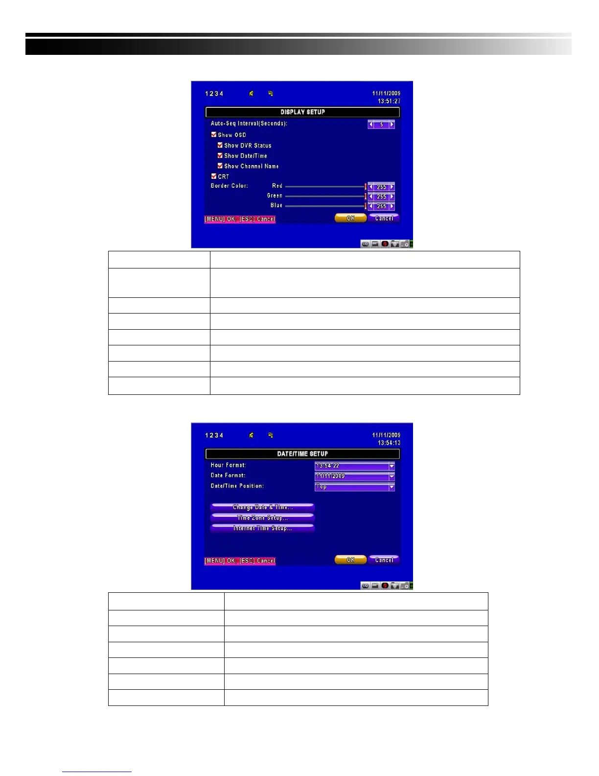 Set up the color of border in LIVE , PLAYBACK mode.(Red, Green, Blue)