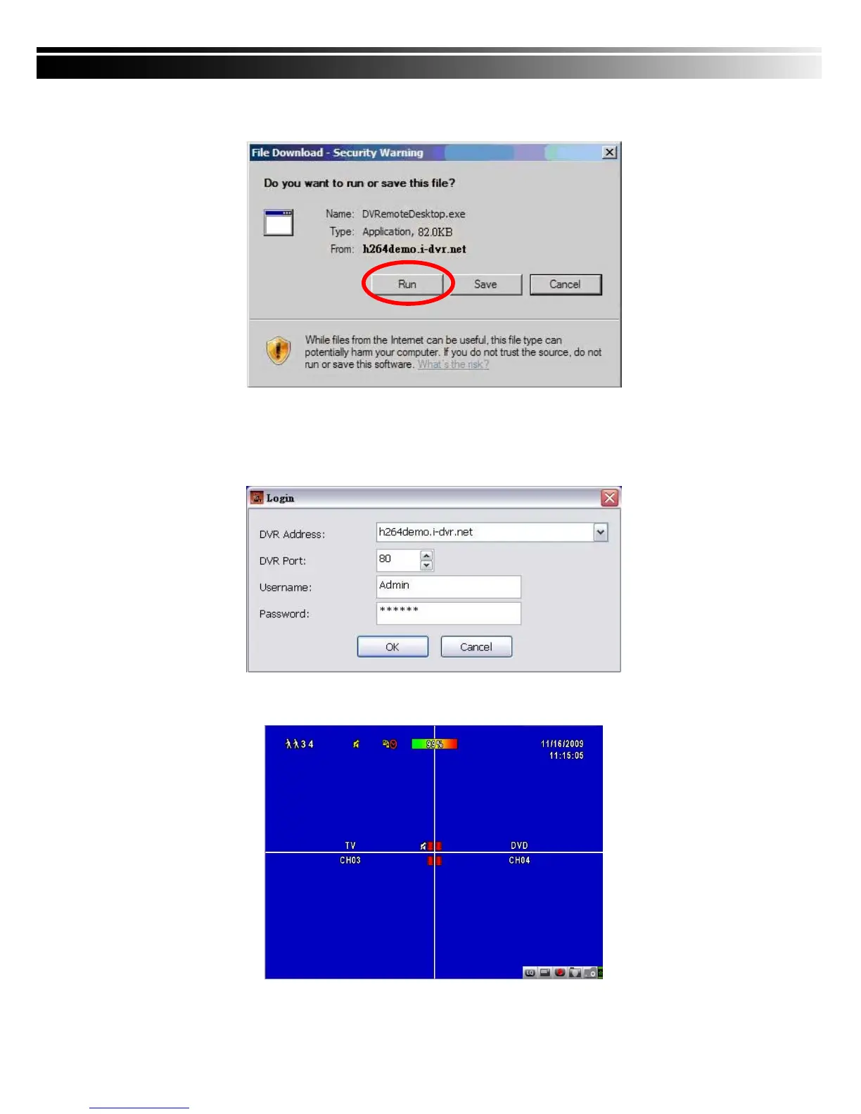 information of login DVR: IP, Port, Username and Password, or choose “Play