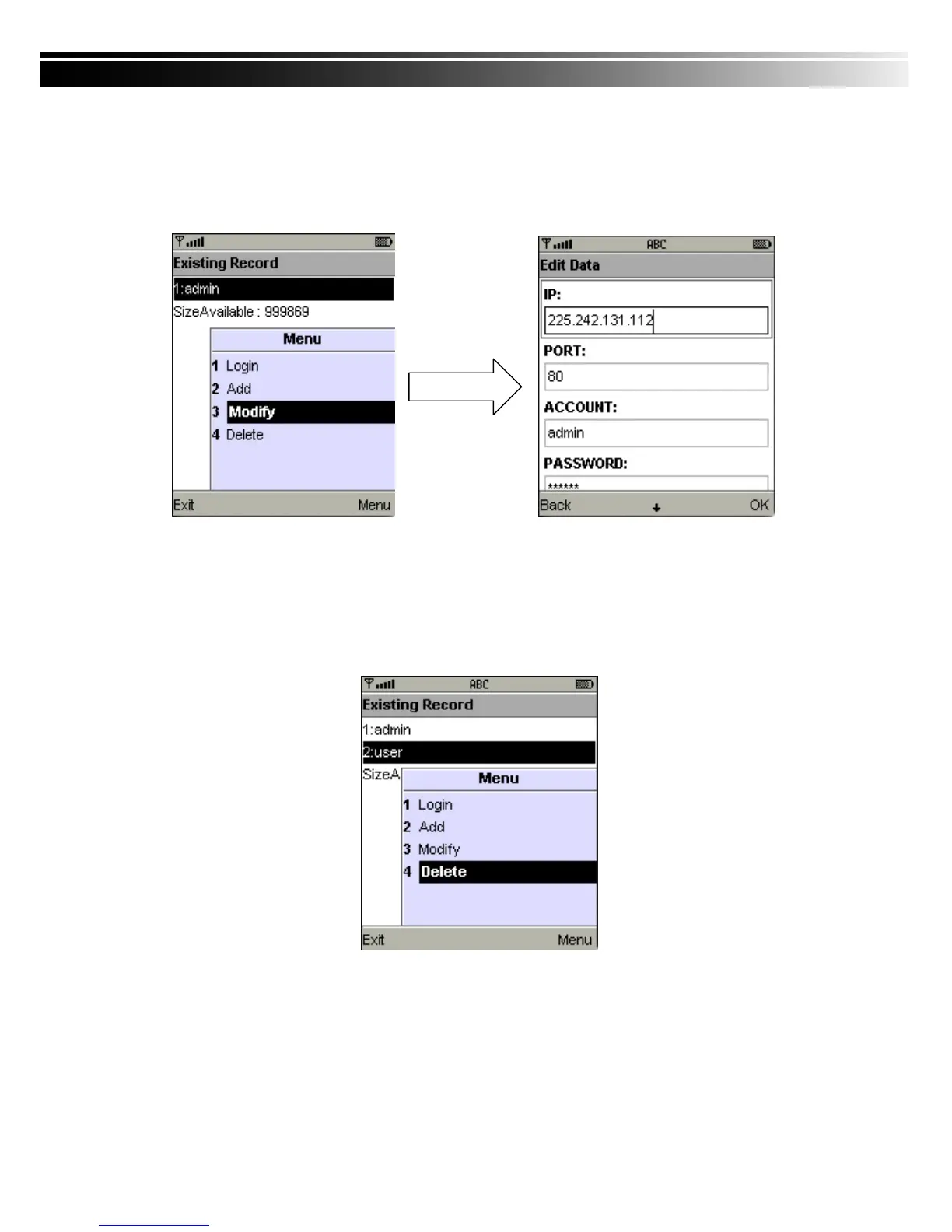 You can use the “Modify” command to change the login information of DVR. The dialogue is