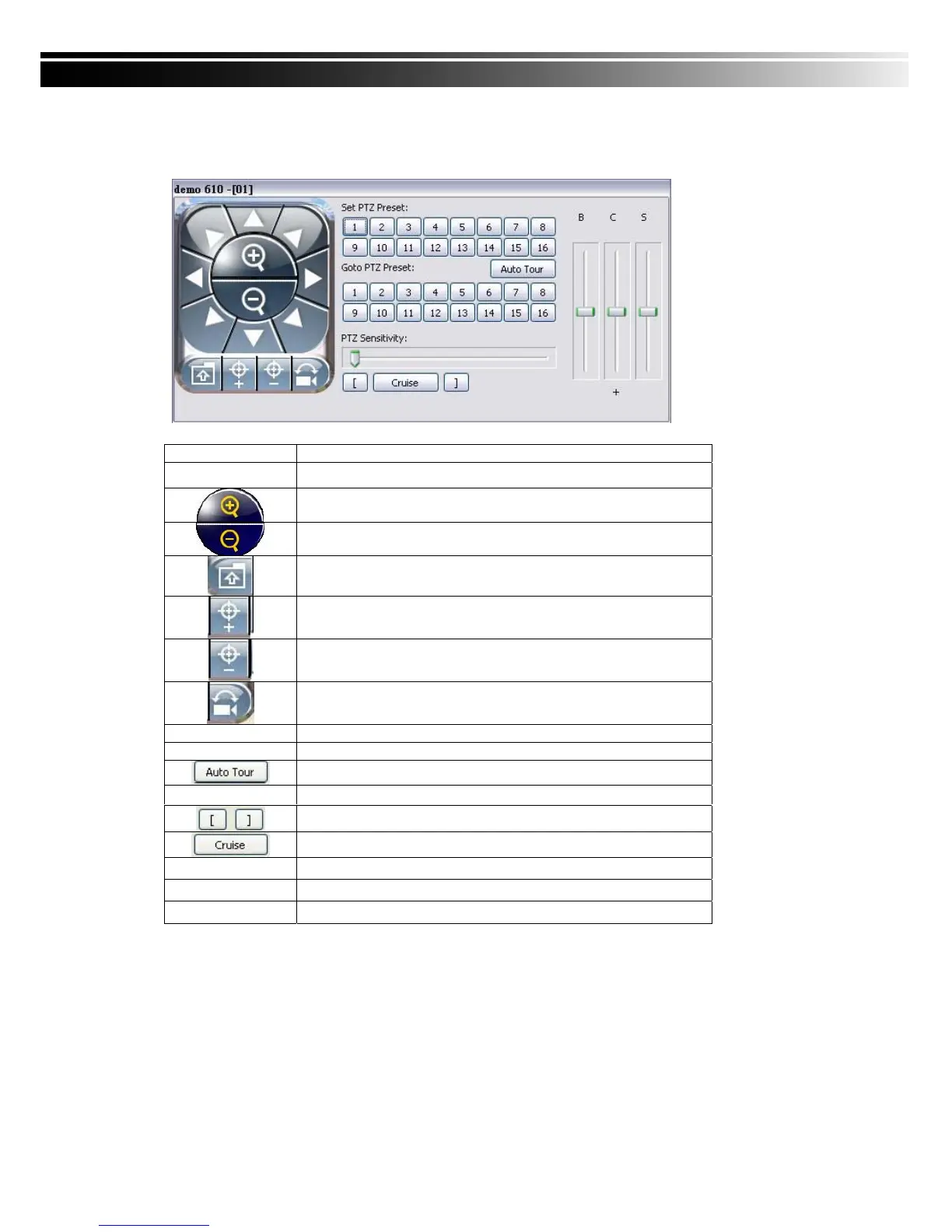 In the main display, right click on the channel will bring up PTZ control panel as below.