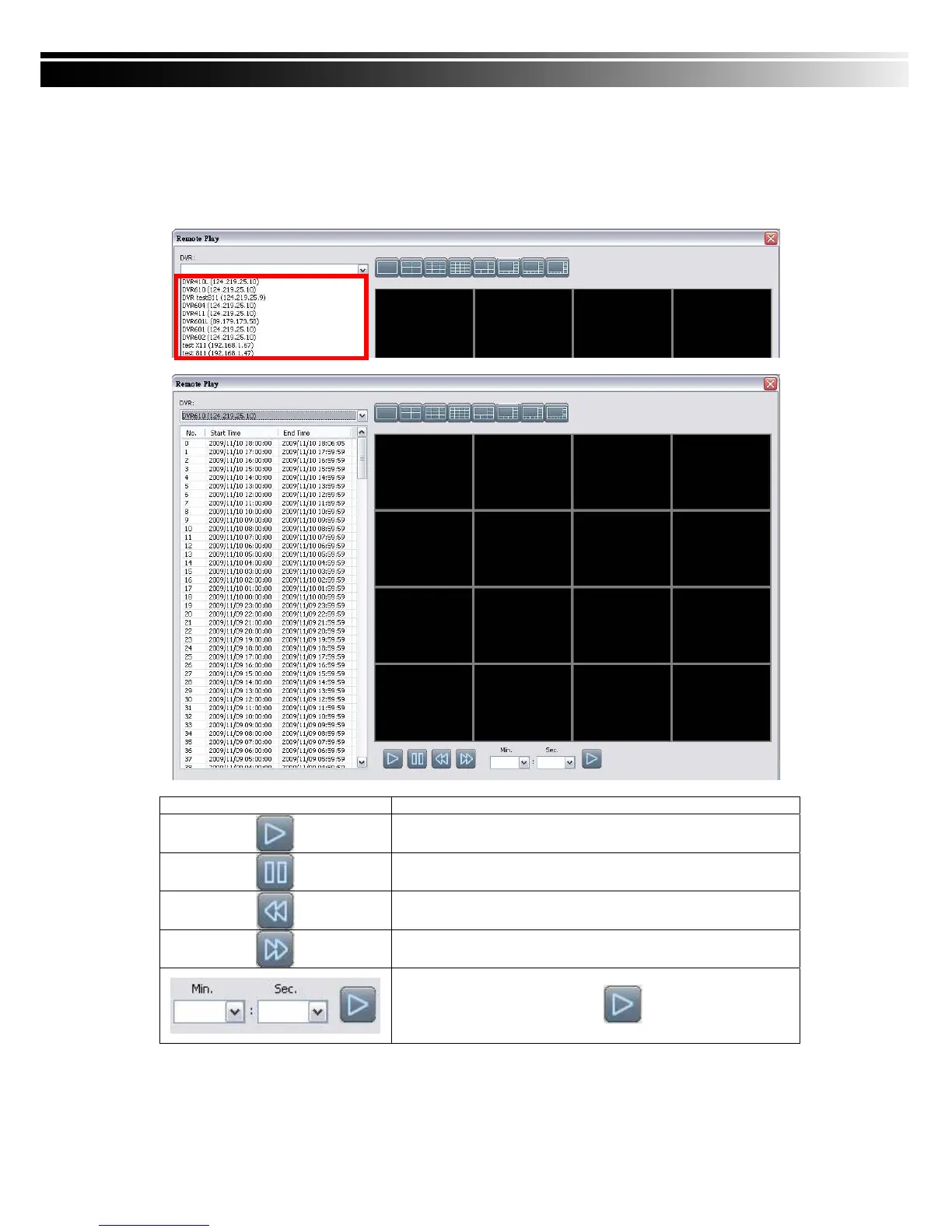 function, select a DVR and a display mode on top of the screen. After the recorded segments