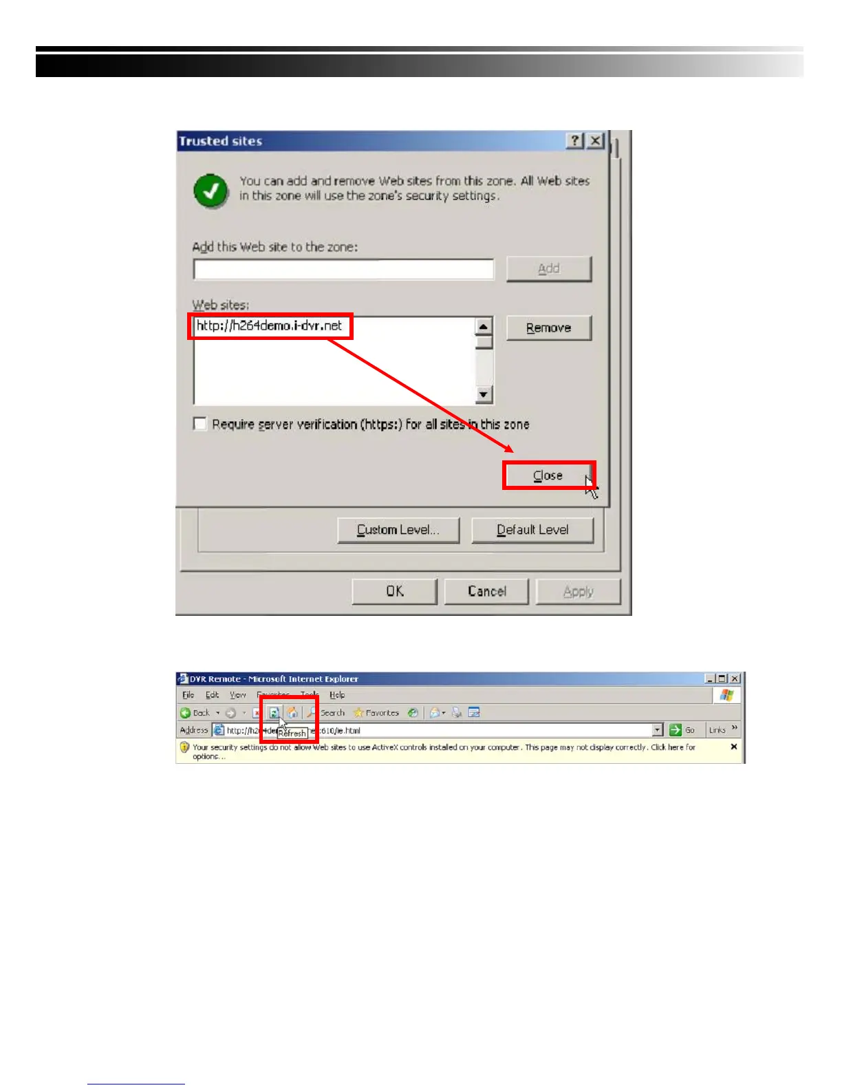 9. Newly added website will appear at the trusted web sites list. Press close.