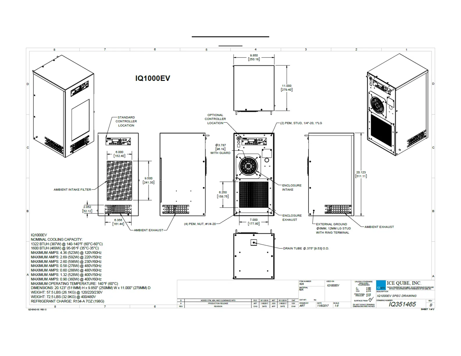 Ice Qube Evolution IQ20000EV - Specification Drawings; Model Specifications