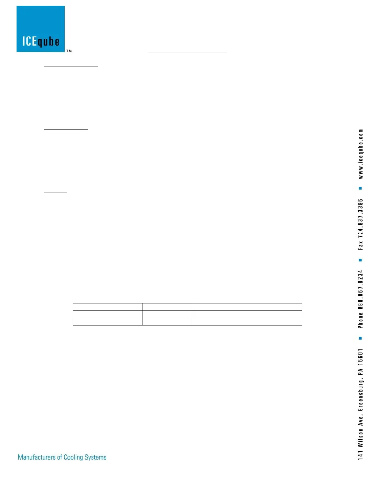 Ice Qube recommends that the unit remains in the proper upright position, as indicated on the shipping container.