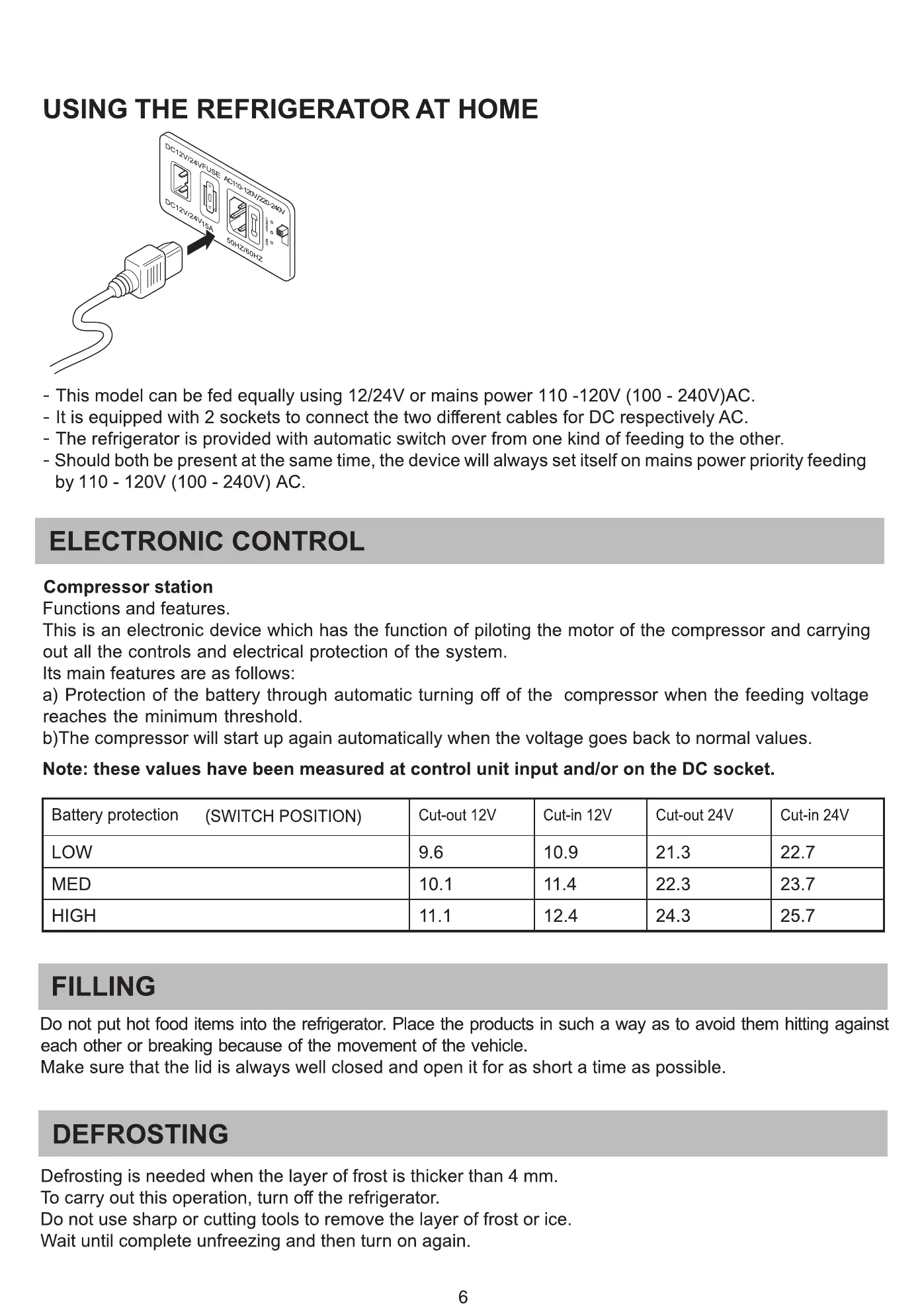 b)The compressor will start up again automatically when the voltage goes back to normal values.
