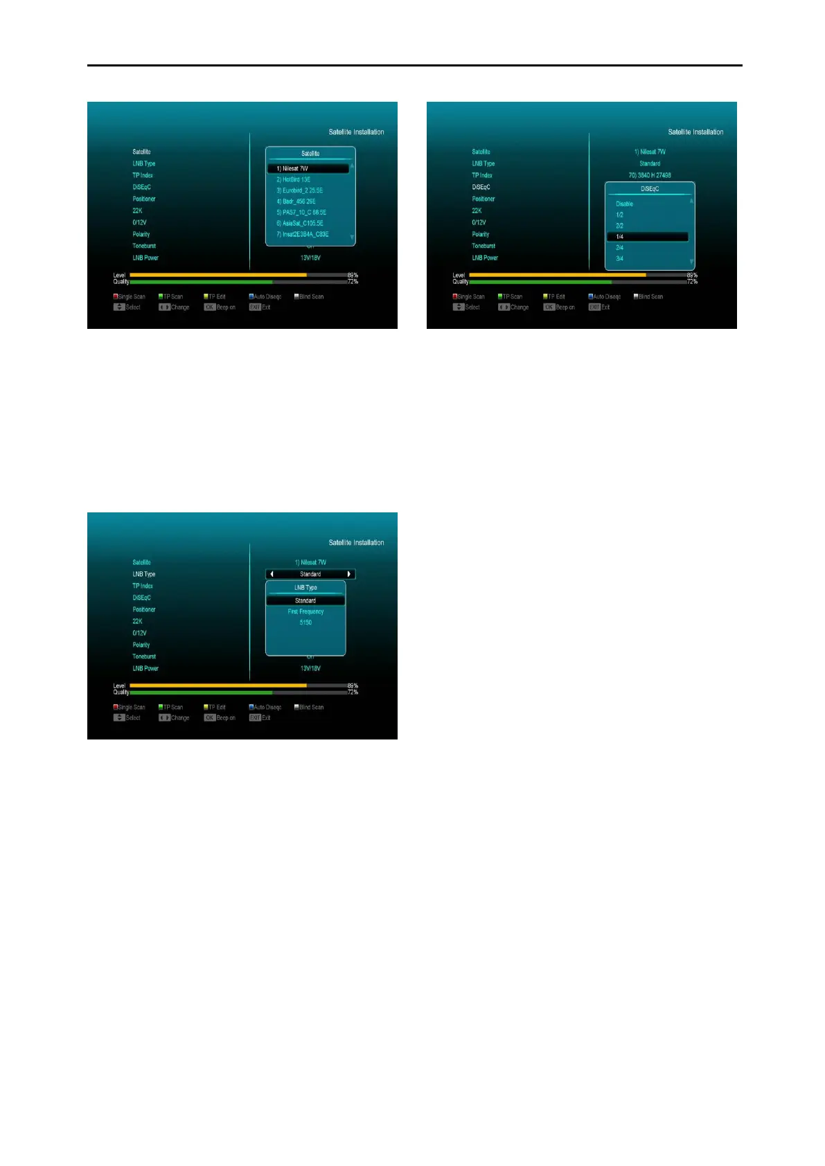 c) 1/4, 2/4, 3/4, 4/4: 4 DiSEqC ports.